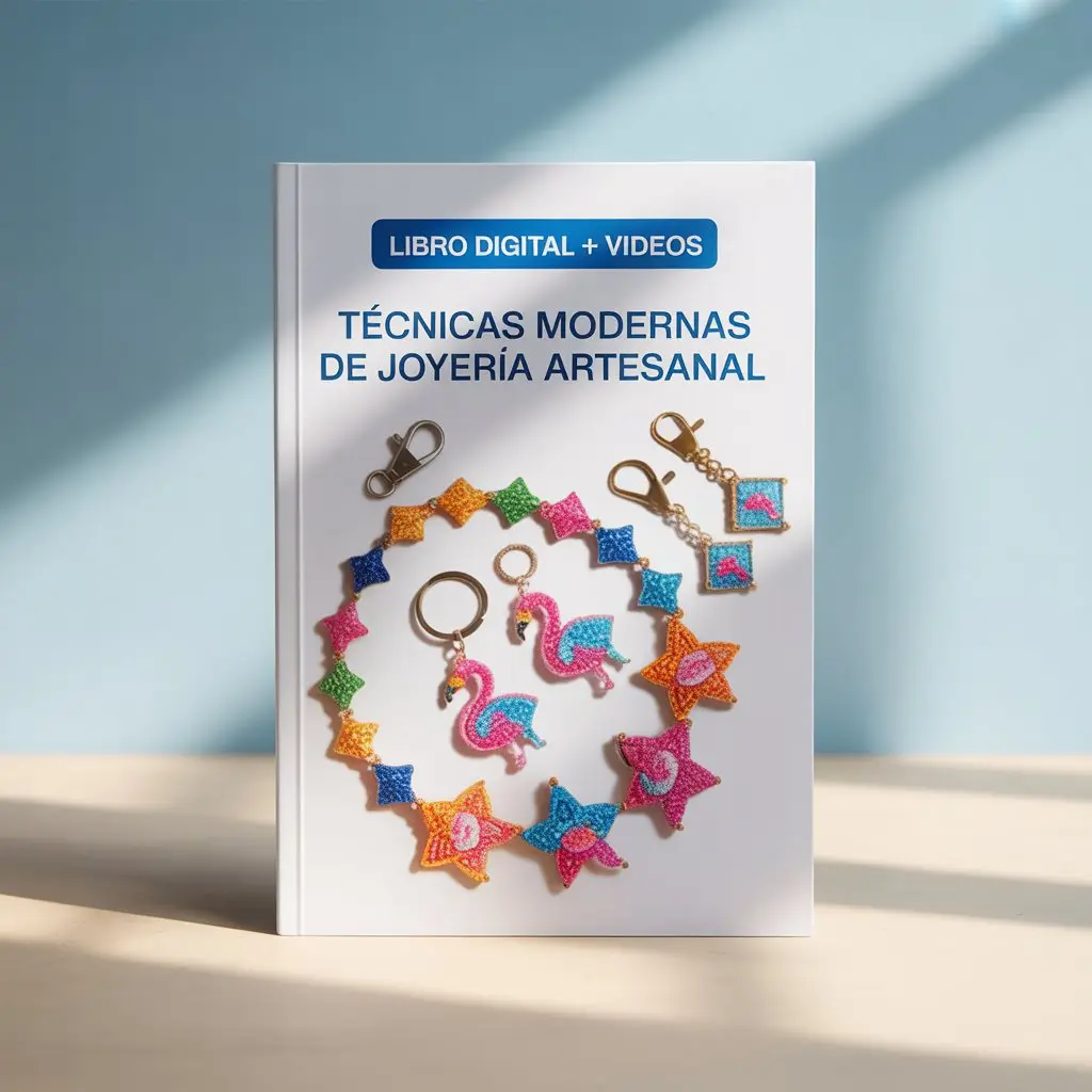 Recibirás el ebook completo con las 4 técnicas de joyería artesanal (peyote par, peyote impar, puntada cuadrada y puntada ladrillo), videos explicativos y 6 bonos adicionales, incluyendo patrones, plantillas, programas de diseño, lista de proveedores, y más.